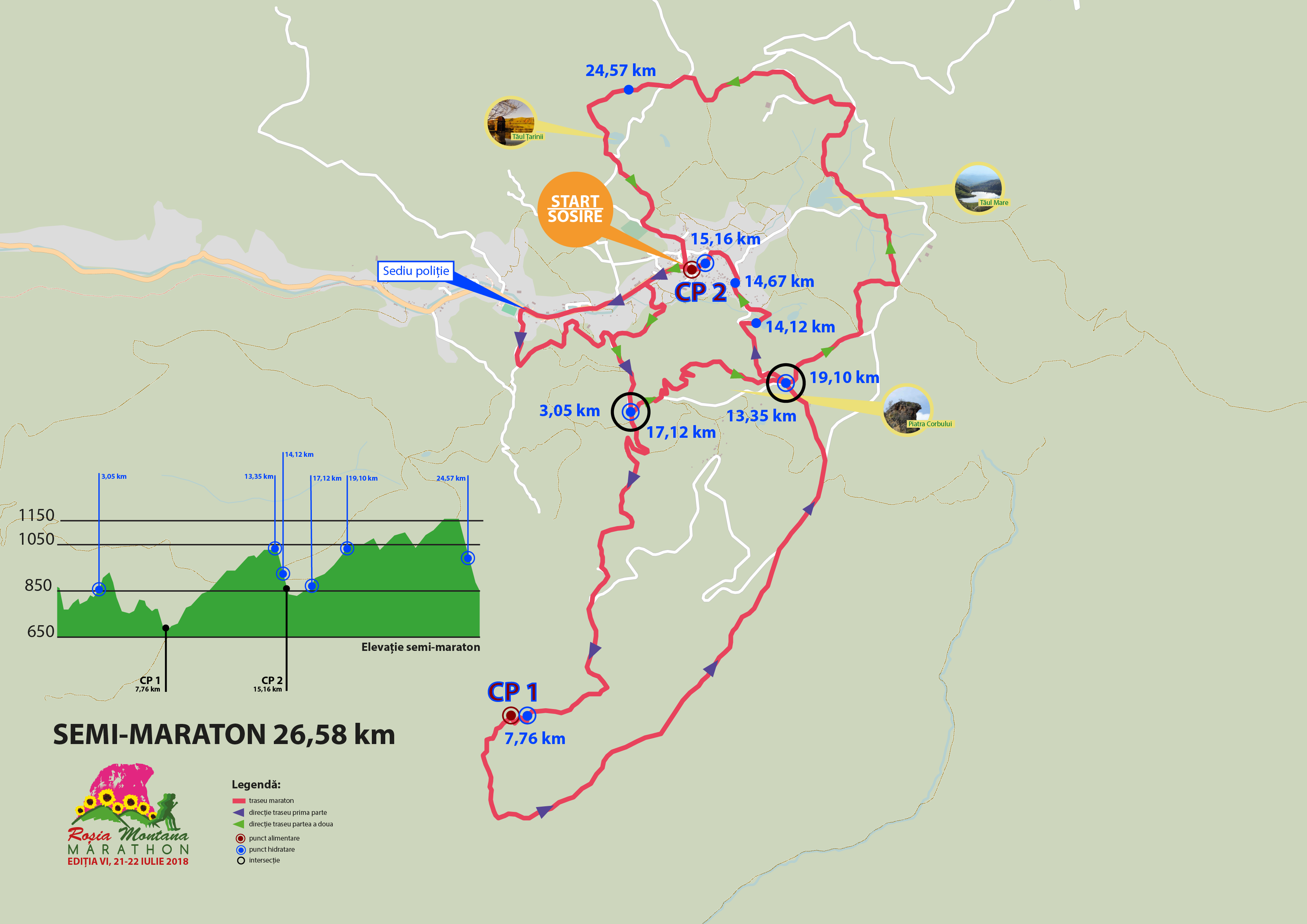 După cum se observă, traseul Semimaratonului este același cu cel al Maratonului, cu excepția porțiunii ce duce spre Detunata.