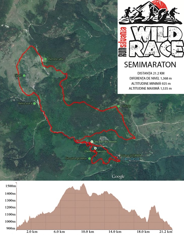 În continuare, traseul urmează acest drum pentru 4.5 km, până în apropierea dealului Păltiniş – km 31.5. Aici se iese din pădure, iar traseul părăseşte drumul (care continuă catre stânga) şi urcă pentru cca 50 m până în golul alpin (PC9), de unde urmează o coborâre de câteva sute de metri, până ajunge la PA4 / PC10 (km 32). Din acest punct se intră pe traseul circuitului turistic Rachiţele, marcat cu punct roşu, care duce pe sub Vârful şi Peştera Lespezi, pe deasupra Poienii Şuşman şi coboară la refugiul Salvamont din Cheile Stanciului, la km 35 – PC11. De aici, traseul coboară câteva sute de metri către cascada Vălul Miresei, dar în curba de dinaintea acesteia părăseşte drumul şi intră în pădure. Urmează ultima parte a traseului, Circuitul Grotelor. Imediat după intrarea în pădure începe urcarea pe o potecă tăiată printre brusturi şi ferigi. După cca 200 m, poteca merge în stânga şi începe o urcare abruptă, care duce în scurt timp la prima grotă, unde se ajunge pe lângă o stancă asigurată cu lanţuri. Se trece prin faţa grotei şi se urcă pieptiş o pantă abruptă, pe o potecă îngustă în zig-zag, amenajată cu buşteni şi asigurată cu corzi, ce duce la Peştera Suşman, care se traversează intrând printr-o boltă largă şi ieşind târâş, printr-o fereastră îngustă. Urmează o scară din lemn, asigurată cu o balustradă din coardă şi se trece printr-o boltă largă săpată în stâncă, apoi se urcă abrupt ultimii metri până la ieşirea în creastă. De aici se coboară pe o potecă amenajată şi marcată strict pentru concurs, prin pădure, apoi printr-o poiană cu zmeuriş, până la km 37 (PC12), unde se intră pe drumul ce coboară dinspre Nimăiasa şi care se urmează ultimii 3 km, până la Finish. Legenda: PH – Punct hidratare; PA – Punct alimentare; PC – Punct control.