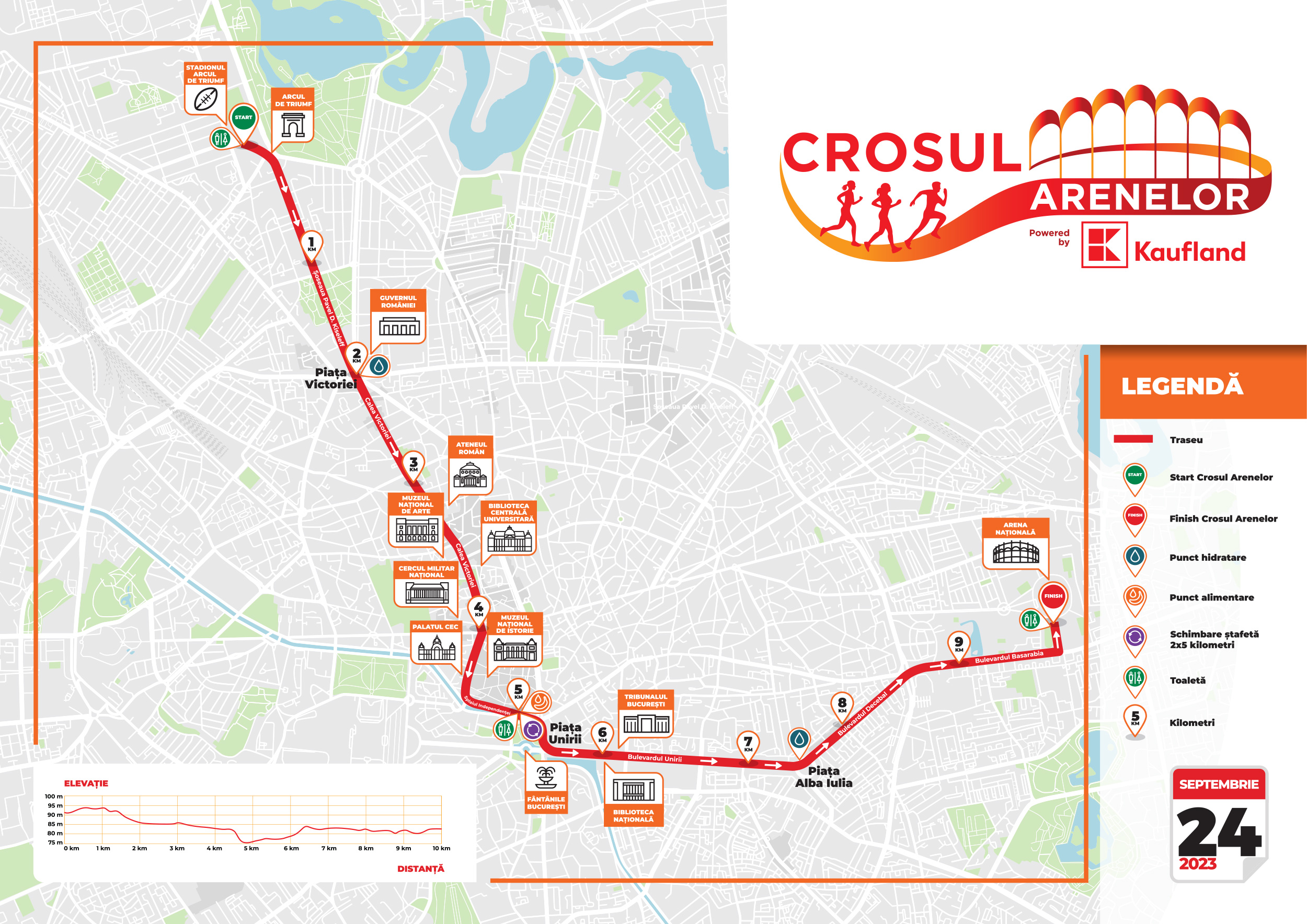 Sub sloganul “Bucureștiul e o scenă, din arenă în arenă”, ne propunem să creăm o atmosferă deosebită pentru toți alergătorii. Pe parcursul traseului veți găsi mai multe puncte de încurajare pregătite pentru a vă oferi o doza de energie fantastică. În aceste puncte vă veți simți ca pe adevărate scene în care voi sunteți artiștii, înconjurați de o atmosferă plină de entuziasm. Suntem aici pentru a vă ajuta să vă depășiți limitele și să vă bucurați de fiecare pas al traseului.