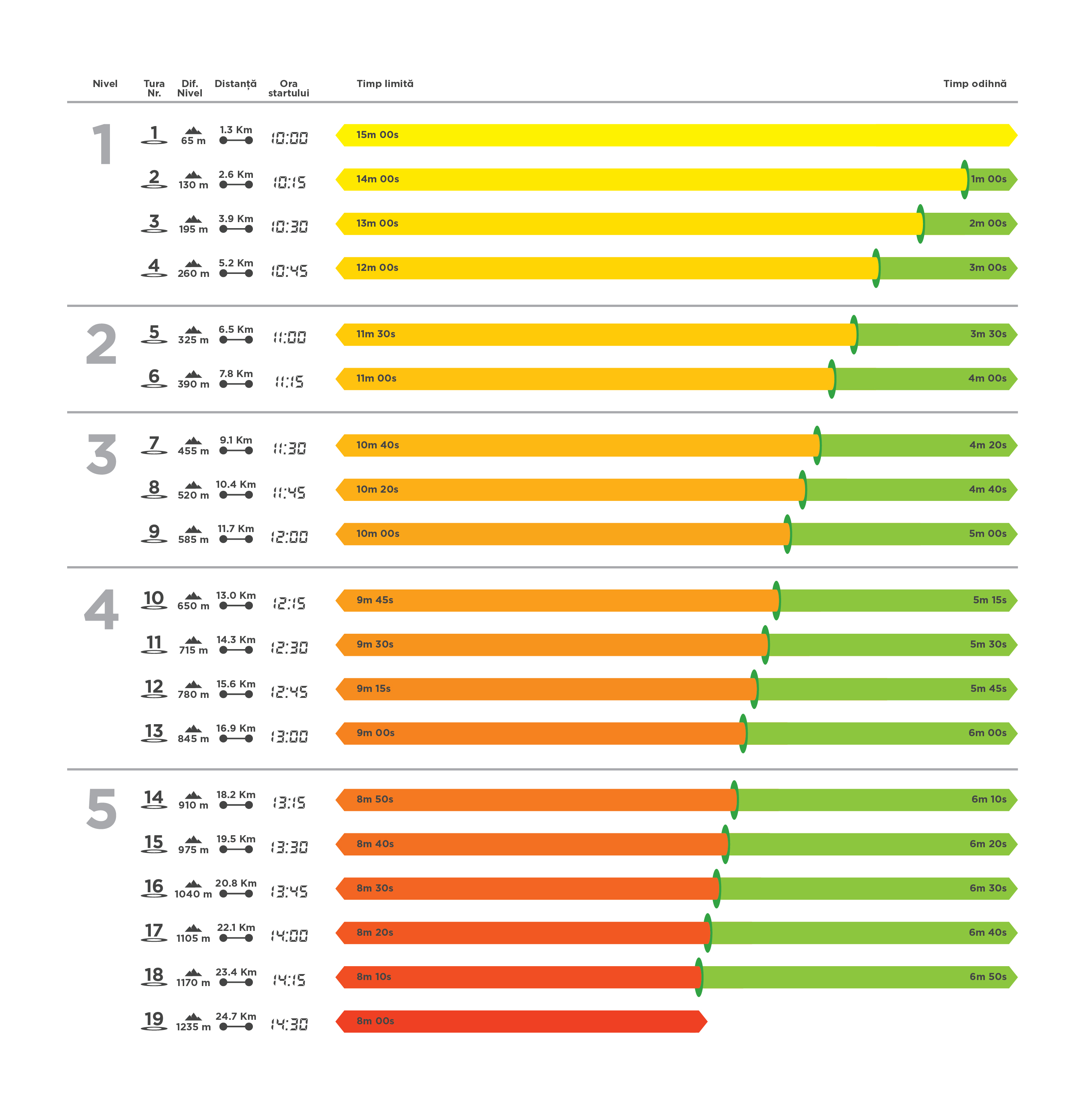 La fiecare sfert de oră, se dă startul pentru a parcurge o buclă dus-întors, urcând și coborând o secțiune de 650 m de pe dealul de la Bencec. Doar că… timpul disponibil pentru a reveni la linia de sosire (și a rămâne în joc) este tot mai scurt. You have to Make it Back…. in due time! 🙂